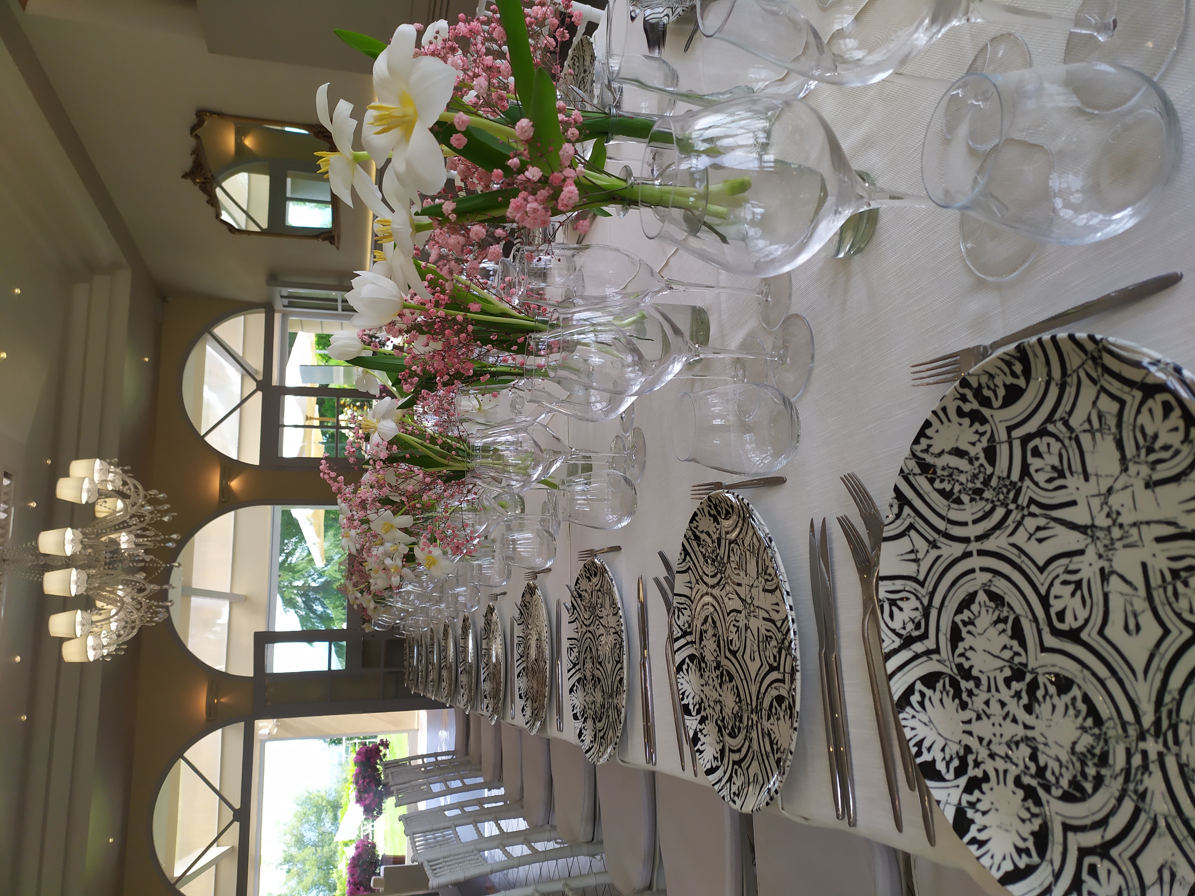 Its modern versality is accentuated by the adjacent veranda (The Emerald Room) with antique mirrors, elegant crystal chandelier and tender wall coverings which can become one with the garden.